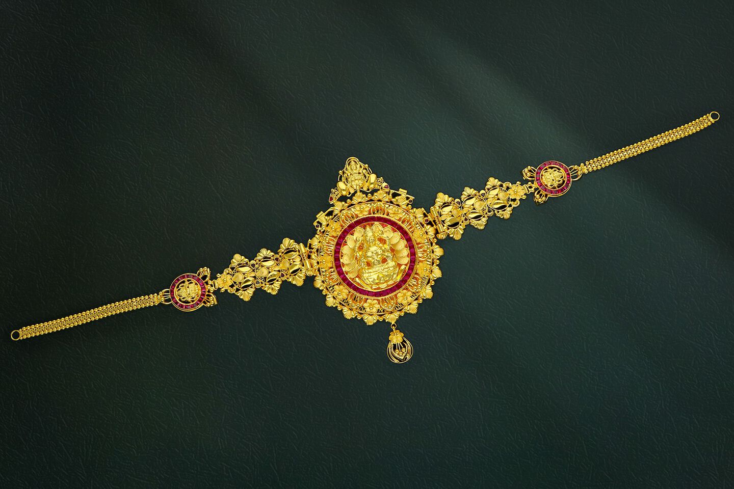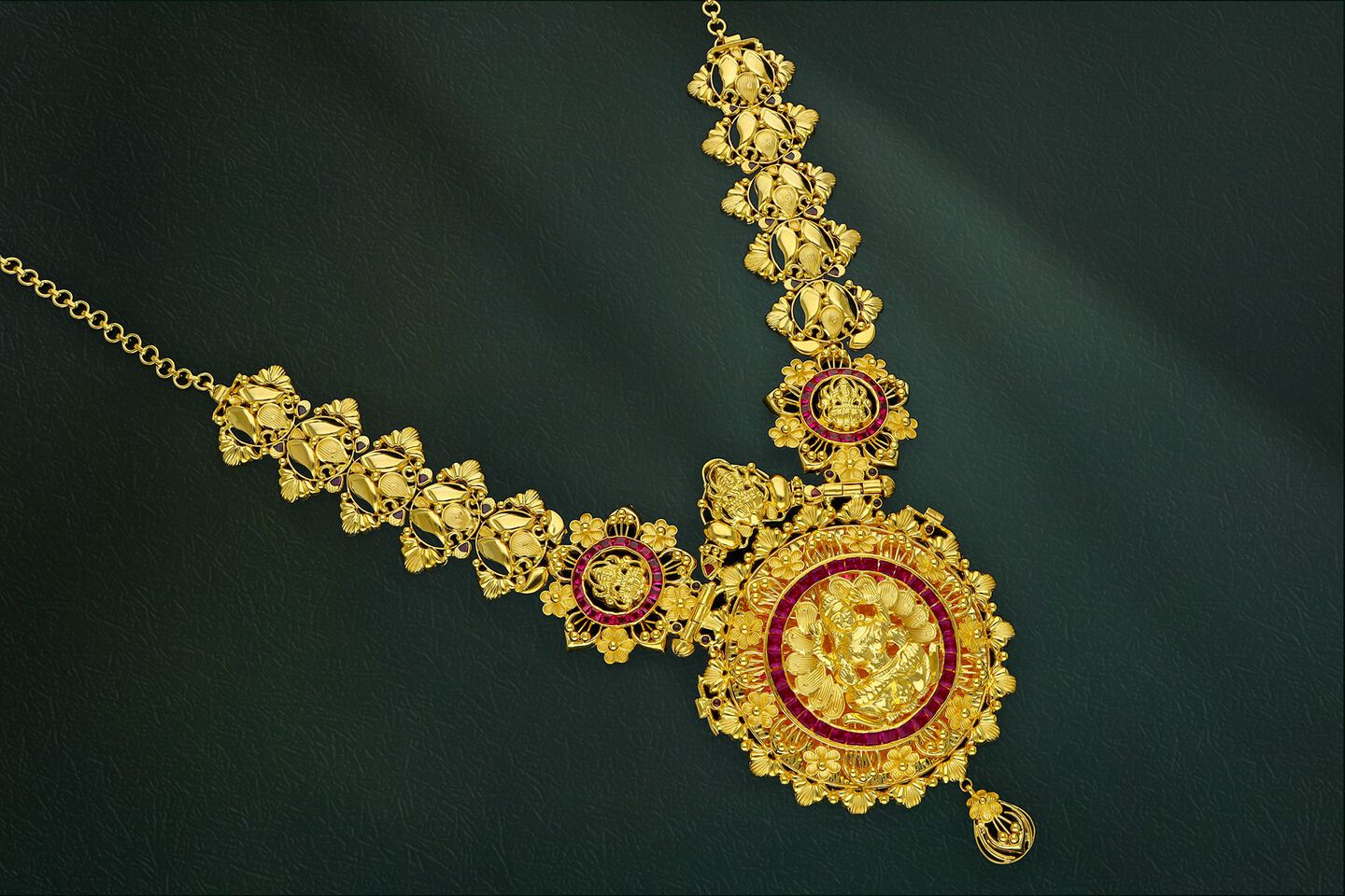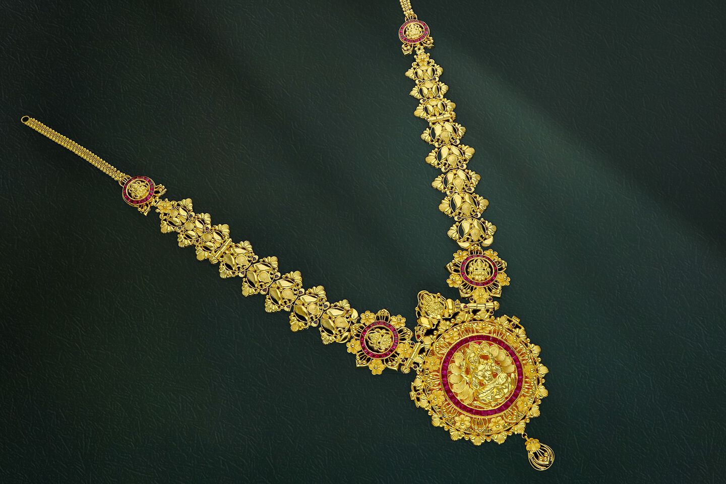One single piece of jewellery can be worn as Haram, Short Necklace, Pendant, Odiyanam and Vanki.